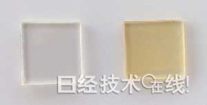该薄膜运用了大日本印刷在住宅用建筑装饰材料的生产中培育的、照射电子束使涂装树脂硬化的技术。由于可形成高硬度涂层,因此,使用该薄膜的树脂玻璃与作为通用产品的聚碳酸酯(PC)树脂相比,表面耐磨损性更强,紫外线导致的变色及劣化现象更少(图1、2)。原来的PC树脂玻璃虽然加工效率出色,但耐气候性、硬度及不易损伤性却不及玻璃。