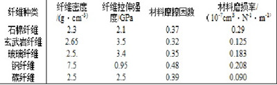 纤维种类 纤维密度/(g?cm-3) 纤维拉伸强度/GPa 材料摩擦因数 材料磨损率/(10-7cm3?N-1?m-1)
