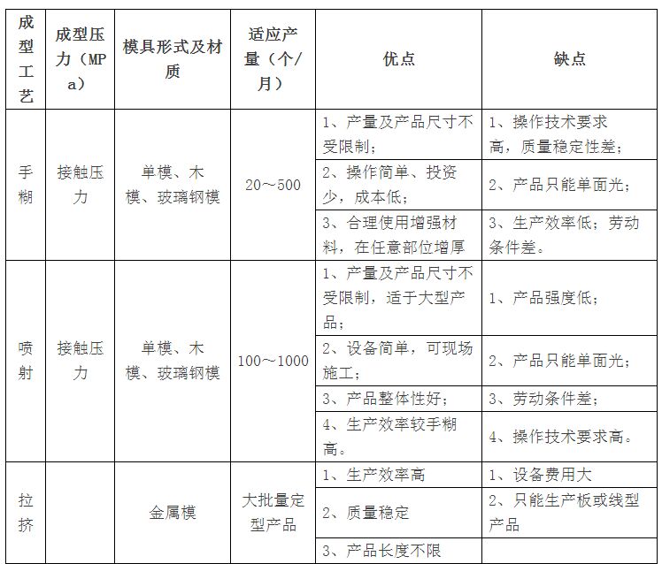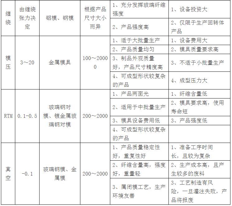 玻璃钢生产工艺之间的比较