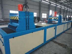 玻璃钢拉挤机组是由纱架。胶擂、预成血摸。固化模其。牵引机、切割机等组成。玻璃纤维无捻粗纱从纱架引出,颠末集束辊进人树脂擂巾充足浸胶,然落伍人预成型模,打扫剩余树脂,井在压实中打扫气泡,再进人成型模,在外牵引力的结果下,授胶玻瑞纤维一壁向前移动,一壁颠末模兵加热因化,这一进程可级当作是一个应声进程,模具可以大概当作一个应声群。
