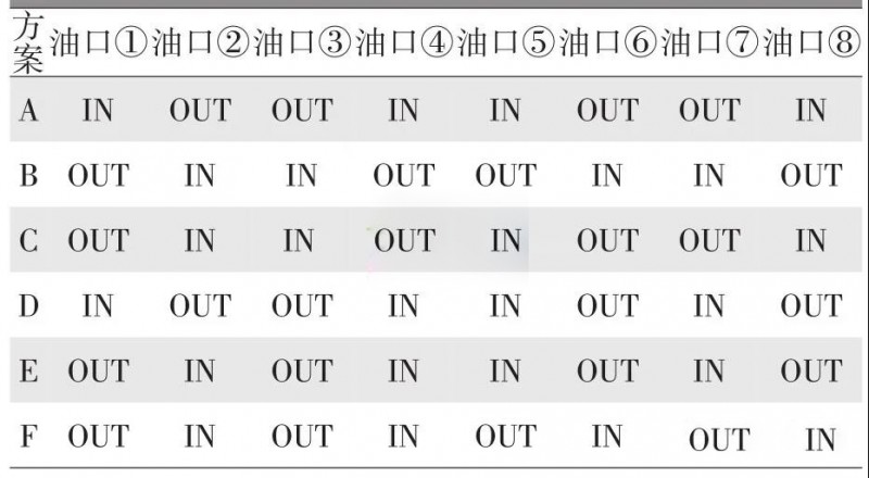 表3 进出油口设置方案