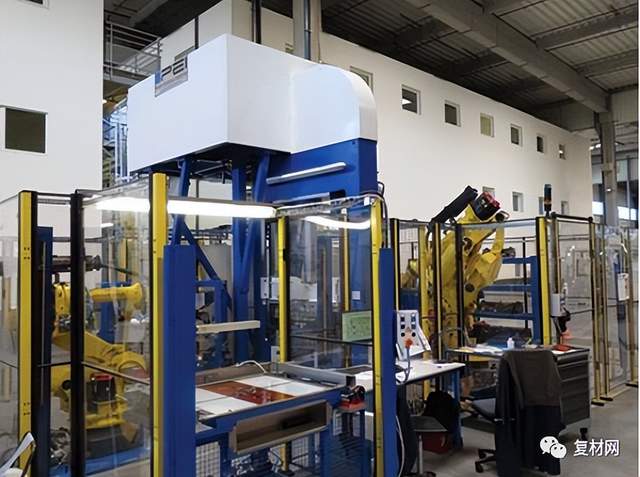 每个制工作站元几乎完全自动化,并使用机器人将聚酰亚胺薄膜载体上的预固化热塑性坯料转移到红外预热器中,然后转移到模具中。 Daher Socata 在很大程度上依赖自动化来为其成型过程带来一致性和可重复性。