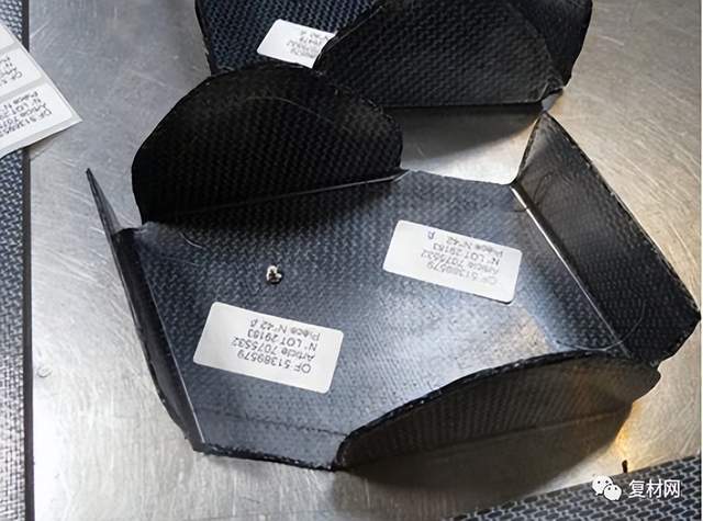 这件A350 XWB 机身角盒刚刚出模。它最初是由 TenCate Advanced Composites BV(Nijverdal,荷兰)生产的碳纤维/PPS 预固结坯料。角盒边缘附近的细线标记了用于修剪的切割线,该切割线将在CMS Industries(Zogno,意大利)提供的加工中心进行。