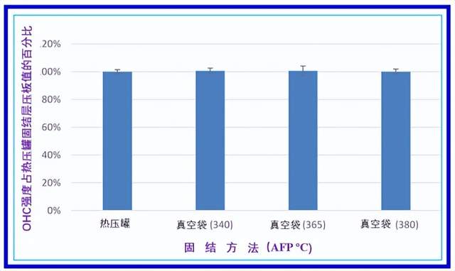 图6. 采用自动纤维铺放(AFP)工艺并使用VBO固结的层压板的开孔压缩强度,相对于热压罐固结