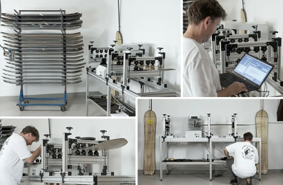 “尝试开发更可持续的冲浪板材料,是我开始看到振动阻尼影响的地方,”他继续说道,“我意识到我需要一些测试方法。于是,我做了一个类似三点弯曲机的东西,但带有弯曲的臂,这样快速释放时,木板会弹跳,我能看到阻尼现象。随后我开发了软件,成功实现了高质量的数据和可重复性。那是2018年。”