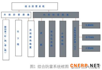 风电场的实际情况进行全面的考虑,按照防直击雷、防雷电电磁脉冲的方法设计一个综合的防雷系统工程,风电机组综合防雷系统包括如图1 所示的六个方面。