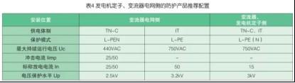 发电机侧定子一般采用IT 系统, 电网侧一般采用TN - C 或者IT 系统,SPD 的UC 的选取主要是参照IEC61643 - 12 :2008 中6.2.1.1。