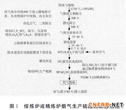 图1 熔炼炉或精炼炉烟气生产硫酸的工艺流程