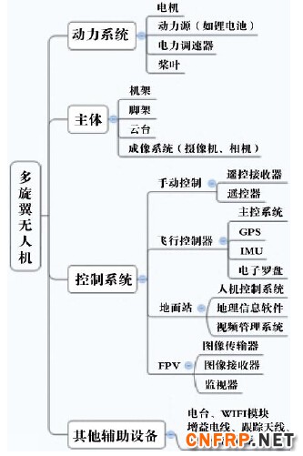 多旋翼无人机主要由动力系统、主体结构、控制系统、辅助设备组成,具体如图5所示。
