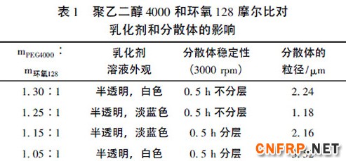 2.1.聚乙二醇和环氧128摩尔比对乳化剂的影响