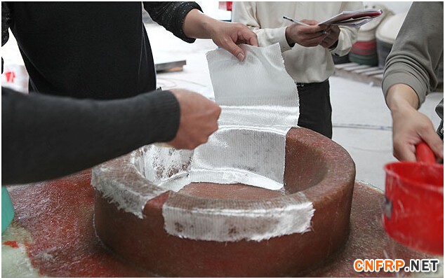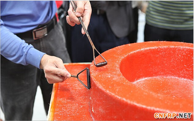 在铺设中间层的过程中,我们采用一毡一布即短切毡,方格布重叠的工艺,用两层方格布铺设,层间的剪切力很差:单用短切毡铺切,它的纤维线短,力向性能不集中,而具含胶量大。鉴于它们各有的优点作为各自缺点的互补,采用RM法,促进树脂纤维之间的浸透,提高纤维布层间力矩,从而得到好的效果。