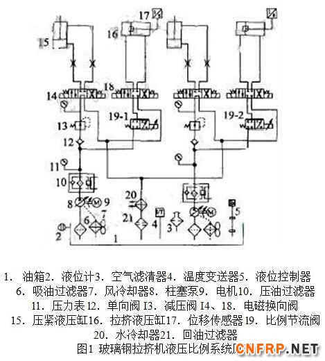 玻璃钢拉挤机是玻璃钢制品行业重要的设备之一, 可用于电缆桥架、电工梯、电厂托架及各类等截面玻璃钢型材的拉挤成型。这种设备采用液压比例系统控制,使两条拉挤液压缸在运行中的速度保持恒定,从而保证所拉挤的制品能满足玻璃钢制品工艺技术要求。为保证系统连续、可靠、安全、稳定地工作,本文分别从系统设计及使用维护等方面采取措施,以满足液压比例系统的温升要求。