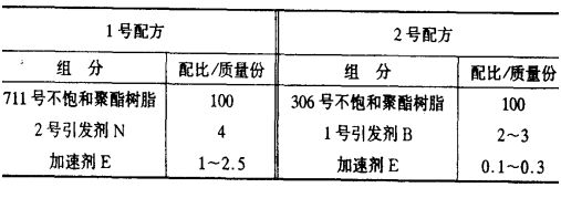 常用的玻璃纤维制品有:玻璃纤维纱、无捻粗纱布(带)、无纺布、有捻纱织布和玻璃纤维毡,其中用得多的是玻璃纤维毡。玻璃钢制品的典型配方如下所示。