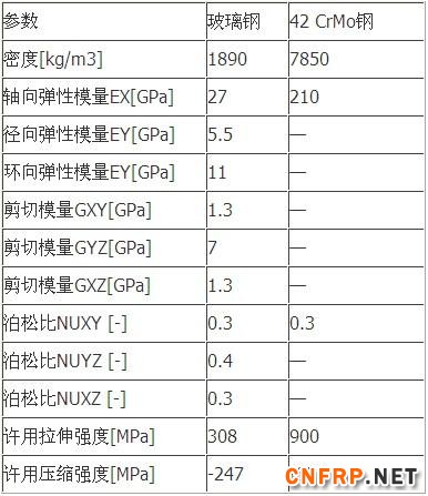 根端玻璃钢的主要成分是三轴布,T型螺栓接头采用42 CrMo钢, 其材料参数如表1所示。