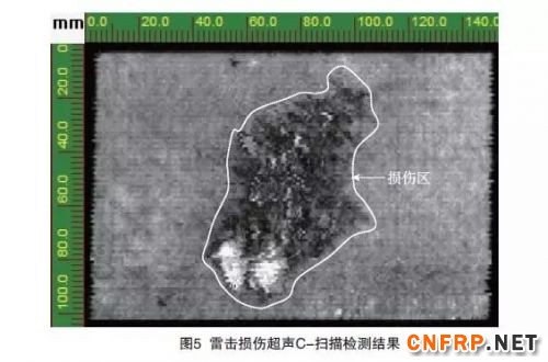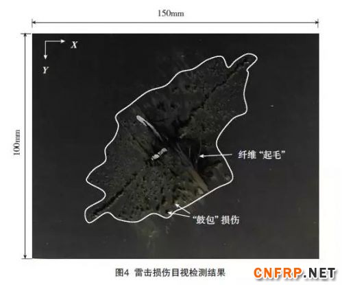 图4 是经过雷击后,在复合材料试样表面形成的目视损伤检测结果,
