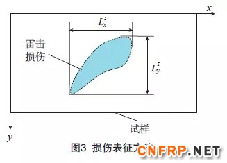 向长度(即y 方向投影长度),用L sy 表示闪电在复合材料试样内部引起的雷击损伤在y 方向的取向长度,y 方向亦为复合材料试样的宽度方向。在同样的条件下,L sx 或L ix 越大,表示闪电在复合材料试样表面或者内部引起的雷击损伤在x 方向取向越明显,沿x 方向扩展越大;L sy 或Liy越大,表示闪电在复合材料试样表面或者内部引起的雷击损伤在y 方向取向越明显,沿y 方向扩展越明显。
