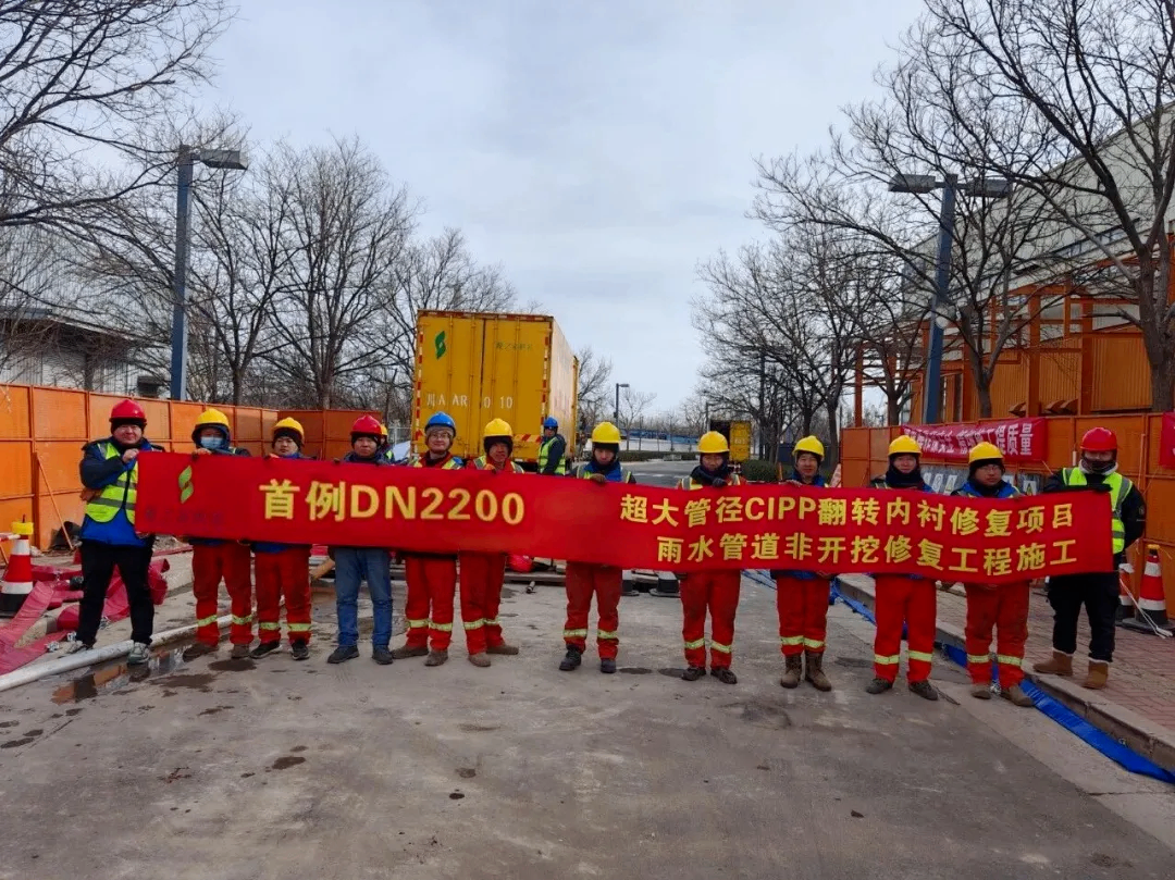 2026年初,天津经济技术开发区主干道下方近6米深处,一段总长194米、管径达DN2200的老旧雨水管道,在不开挖路面、不影响交通的前提下,顺利完成整体非开挖修复——全国首例超大管径、深埋、冬季条件下CIPP水翻修复工程圆满竣工!
