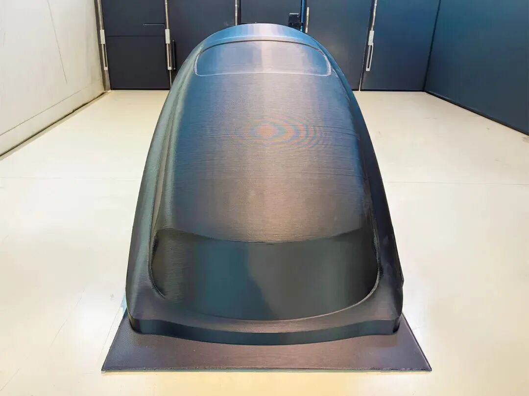 整套工艺将大幅面增材制造与可控后处理链条相结合,同时满足结构性能与表面质量要求。部件采用 **20%碳纤维增强ABS(ABS+20% CF)** 打印,依托高性能3D打印材料保障尺寸稳定性与刚度。