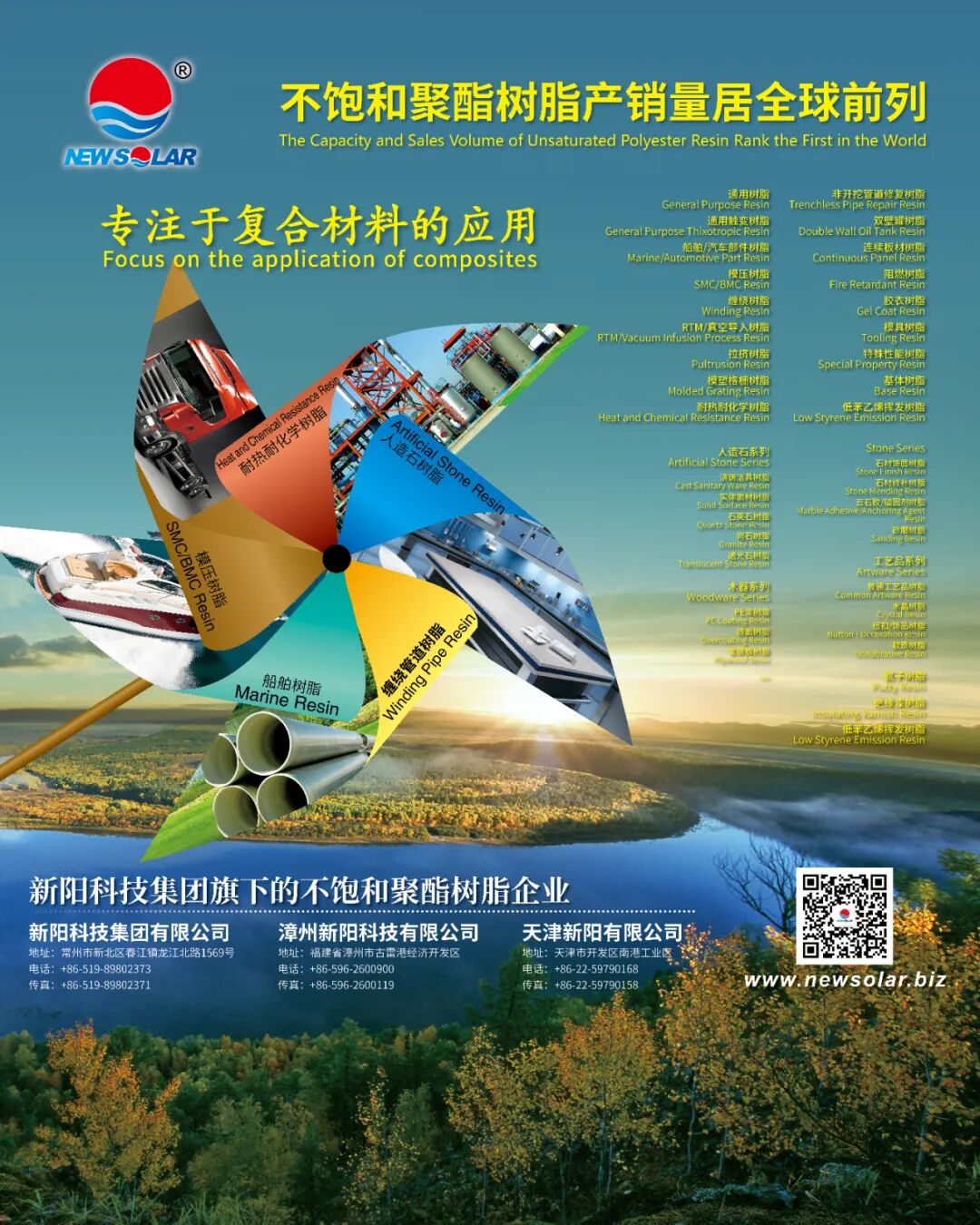 新阳科技集团有限公司现拥有18万吨/年不饱和聚酯树脂生产装置,全部采用先进的DCS自动控制系统。公司致力于研发和生产高性能 不饱和聚酯树脂,竭诚为不断创新、持续发展的复合材料行业提供优质服务。