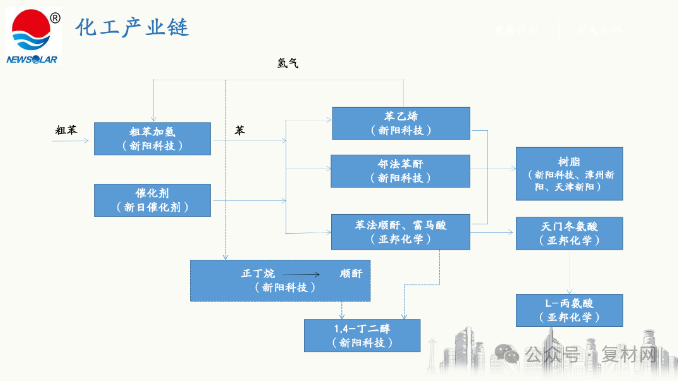 新阳科技集团以循环经济为理念,以产业链建设为目标,以规模化、集约化的运营模式为方向,走可持续发展的道路。现主要产品已形成25万吨/年粗苯加氢,6万吨/年顺酐(含富马酸),60万吨/年苯乙烯,10万吨/年苯酐,37万吨/年不饱和聚酯树脂的生产规模;拥有3.8GW太阳能电池片生产能力。不饱和聚酯树脂的产销量居中国首位,全球前列。