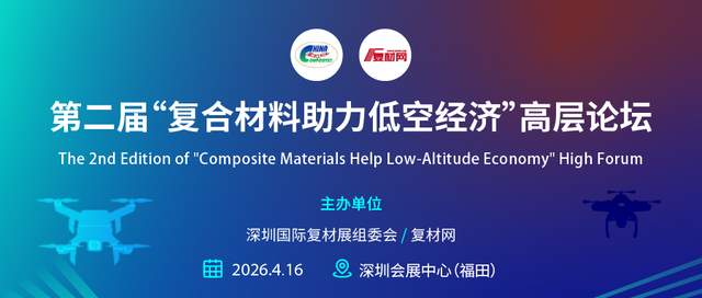 第四届深圳国际复合材料工业技术展览会将于2026年4月15-17日在深圳会展中心(福田)盛大举办。本届展会预计将汇集超过200家行业知名企业参展,吸引近10,000名全球专业观众到场交流。作为展会重磅同期活动,组委会将携手行业知名媒体“复材网”,于4月16日举办第二届“复合材料助力低空经济”高层论坛。本届论坛的主题是“复合材料低成本制造如何支撑规模化发展”,将重点探讨产业规模化发展的核心瓶颈,旨在推动材料端与应用端的协同创新与降本突破。
