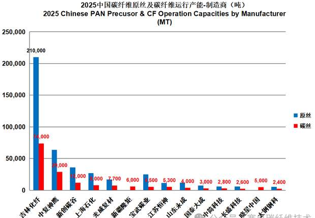 吉林化纤集团: 2025年对于吉林化纤是伟大年份,产能首次超过了长期占据榜首的东丽公司,成为世界最大碳纤维企业。2026年吉林化纤依然在紧锣密鼓地推进7条线(总产能2.6万吨)的建设,预计在年底实现总产能10万吨,在相当时间内能持续保持全球最大。除了传统湿法工艺,吉林化纤集团在干喷湿法也在努力推进,在2024的T800级基础上,全力加快开发T1000、T1100以及M40高模系列产品,不断拓展高端领域应用市场。