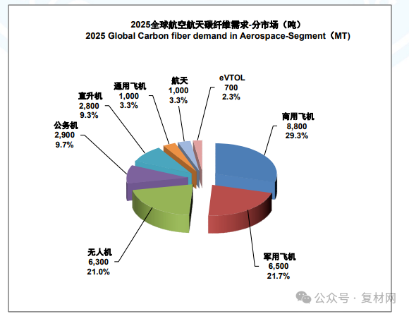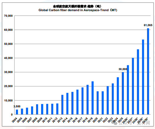 全球市场的发展趋势如下图:2025 年对碳纤维的需求量为 30,000 吨。