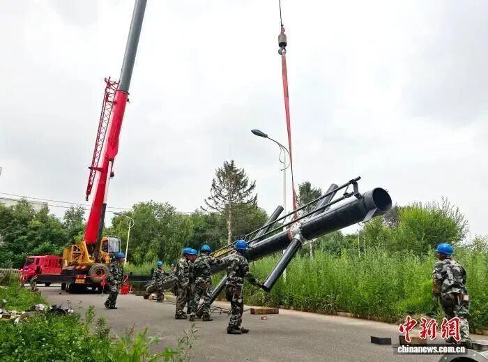 图片来源|2025年7月11日,国网吉林供电公司工作人员在吉林国兴复合材料有限公司进行66千伏碳纤维抢修塔试组立。(资料图) 王雨欣 摄