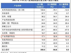 2021年1-10月产业用玻纤制品出口额17.1亿美元