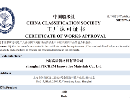 上海富晨多款高性能树脂通过CCS中国船级社认证...