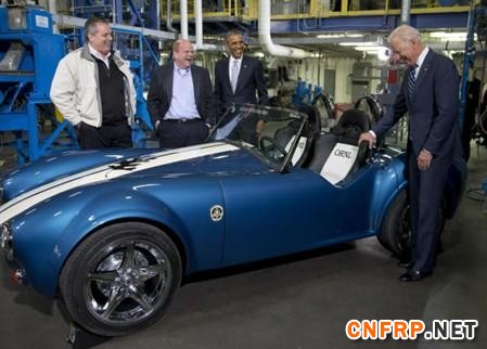 奥巴马一行参观了橡树岭实验室利用增材制造技术(3D打印)生产的碳纤维复合材料谢尔比眼镜蛇超跑。