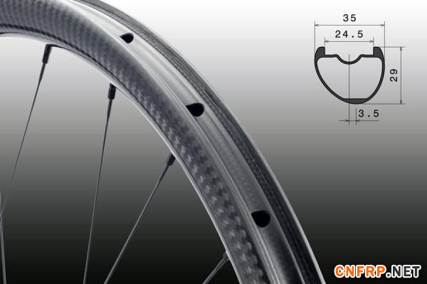 采用不对称的偏心轮圈设计,无沟边,27.5大小的真空轮圈重量是295克。再加上他们加强辐条帽安装座代替钻孔,碳纤维刚性的延续,辐条张力也可以无限增加。