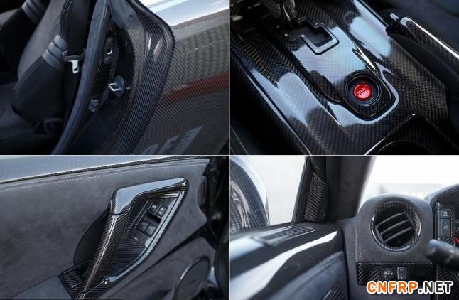车内也不含糊,你能想到的所有可更换部分也都被碳纤维材质所替换,与之相匹配的是Alcantara面料包裹,运动气息十足。Recaro SR-7运动座椅也符合这辆猛兽兼顾性能与舒适的初衷。
