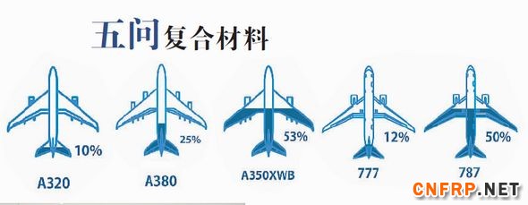 正是因为这些优势,复合材料已经成为航空材料的“新宠”。其在客机上的结构重量日益增加,如今已经开始广泛应用于民用航空制造业。一些先进客机的复合材料重量已经超过金属材料,占其总重量的50%以上,这也成为未来民机在材料选择方面的一种趋势。
