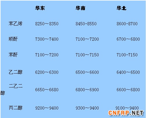 3月17日国内不饱和树脂主要原材料价格行情