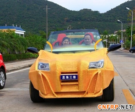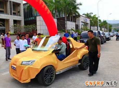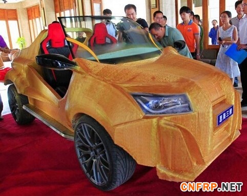 3月24日,台3D打印概念汽车在海南三亚发布。据了解,这台概念汽车由三亚思海三维技术有限公司开发研制,“土豪金”色车身部分是运用复合材料3D打印而成,重约500公斤,其余为组装配件,该车通过电力驱动。