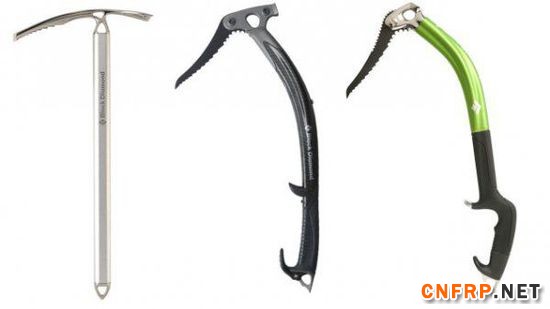 自己动手DIY一个冰镐的步就是决定形状,一把冰镐的几何形状非常重要,能彻底改变整个工具的手感和工作。一把走路时用的冰镐(上左)只能让自己停下来,它的拾料角度(尖角和把手的角度)。混合攀岩斧,比如BD Fusion攀冰小冰镐(上右)角度很陡,而且中间还有一个尖尖的破冰小工具。