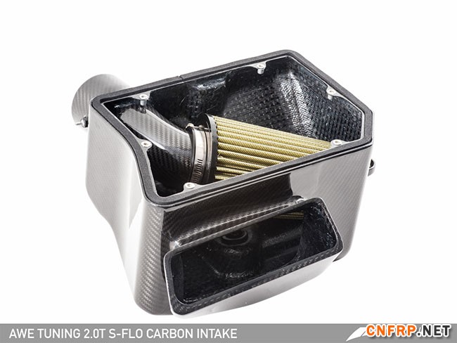 另外,这套AWE Tuning奥迪S3碳纤维进气为全封闭风箱设计,套件内的AWE Tuning S-FLO空滤是这个风箱所能容纳的大尺寸空滤,能将进气量提升至极致。进气量的增加使得该套件对动力的大提升达10匹马力及9英尺-磅的扭矩(曲轴输出)。安装方面,只需将风箱固定至原车的固定位上,将进风口和原车的进气管对接即可完成安装。