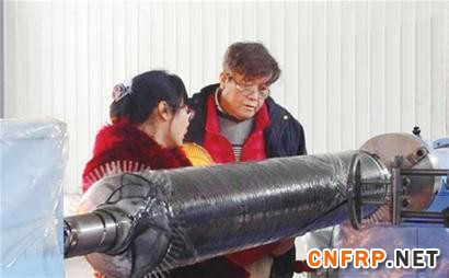 耐压舱攻关团队在现场做碳纤维缠绕试验。