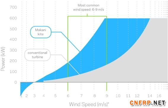 据 Makani+Google 官网信息显示,与传统风机相比,发电风筝的制作成本大幅降低,所需材料仅为传统风机的10%。不仅如此,若依照美国环境条件判断,每个发电风筝所产生的能量比传统风机还多50%。