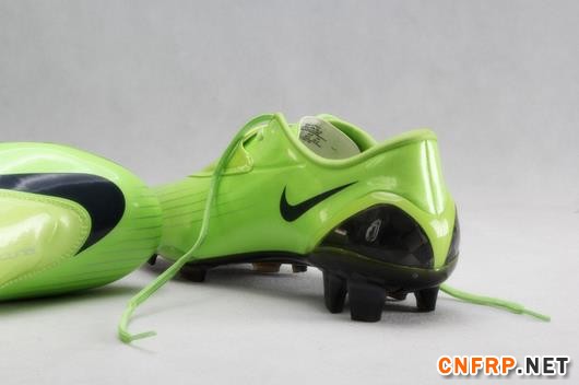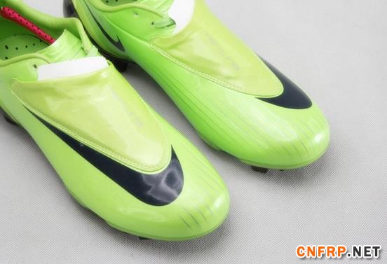 鞋面巨大的SwooshLogo以及让人印象深刻的鞋盖,该设计的本意是消除鞋带区域的不平整,从而减少鞋面对球的控制。