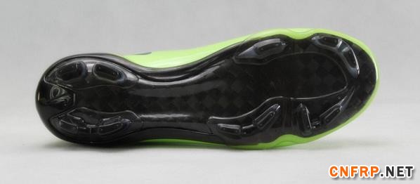 碳纤维材质越来越多的出现在我们日常生活中,包括汽车、自行车等,当今大的用户是航空和航天工业。作为一种轻便且韧性和强度极高的材质,用它来做一双概念足球鞋的底板再适合不过了。