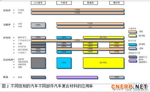 到2015年,汽车复合材料的用量会达到200万吨,增长主要来源于汽车产业的自然增长(年产量增加6%)和已经采用了复合材料的汽车部件的市场份额的增加。