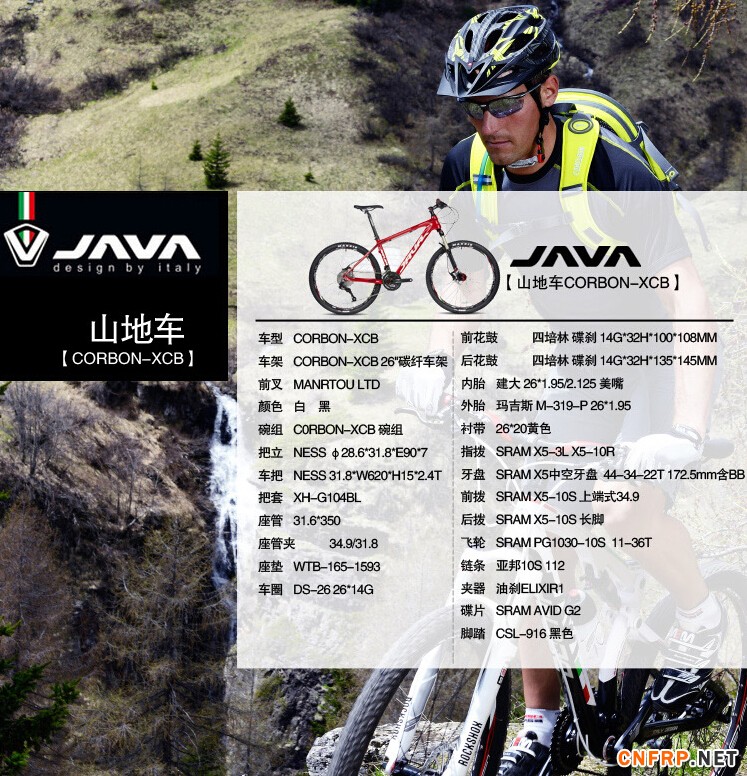 JAVA佳沃CORBON-XCB碳纤维山地车,专业碳纤维自行车架,美国SRAM-X5变速系统30级变速,气压前叉,油刹碟刹。