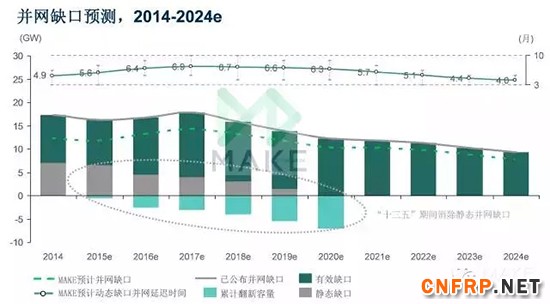 MAKE预计并网缺口短期内仍将加剧,而2017年后则逐渐好转。并网缺口中存在一部分静态未并网容量,可追溯至2009至2011年吊装的容量。并网缺口是风电行业需要开始注意的问题,可通过升级改造、更新改造和电网覆盖率提升等方式解决。
