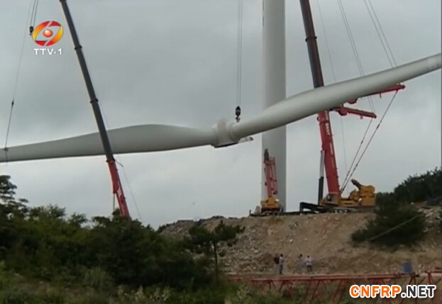 工程负责人 郭仙朝:“2013年9月30日工程开工,到现在全部工程已经完成,今天是后一个风机完成吊装,风机安装已经结束了。”