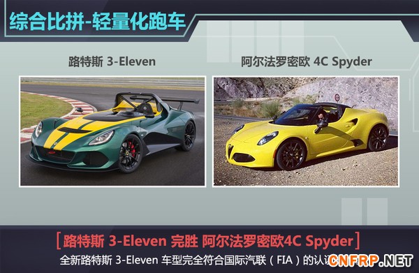 对于一款高性能的跑车而言,限滑差速器与传动效率更高的变速箱则显得尤为重要,全新路特斯3-Eleven在设计上均搭载了以上必要配备,托森式差速器与序列式变速箱的配合不仅能够提升整车的综合性能,还能使其在街道及赛道驾驶中游刃有余。路特斯全新一代3-Eleven相比其竞争对手阿尔法罗密欧4C Spyder更具竞争力,由于4C Spyder并未搭载以上2款配置,因此路特斯全新3-Eleven则在较量中展现出卓越的性能优势。