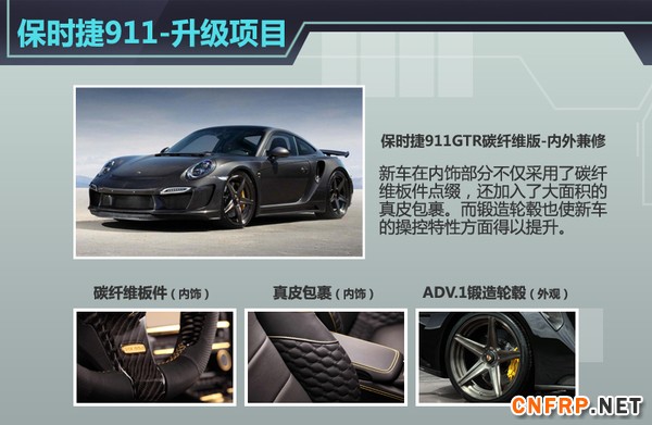 全新911GTR碳纤维版车型依旧沿用了保时捷家族式的设计风格,但在外观及内饰设计上采用了创新元素,在大量碳纤维车身覆盖件及空气力学套件的应用下,将具有更强的动力推重比,从而在引擎动力未做出大幅提升的基础上增加实际的动力表现。
