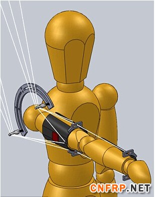 根据科技网站Ubergizmo的描述,这个装置在某种程度上也可以叫做枪支稳定器,跟相机用的那种差不多。外层骨架是用碳纤维做的,目的是为了保证它足够轻,穿上的时候不影响举枪。