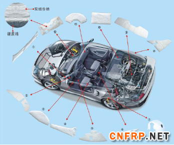 声学包是由一些特殊设计吸声或隔声材料构成,安置在车辆的一些关键部位,目的是减少传递到车辆成员舱的噪声,同时调节用户终提到的声音品质。由于用户听到的噪声特性在很大程度上会影响用户对汽车质量高低的评价,所以汽车声学特性的开发不仅仅是降低噪声水平,同时也包括调节声音的品质,以满足用户期待的声音特性。